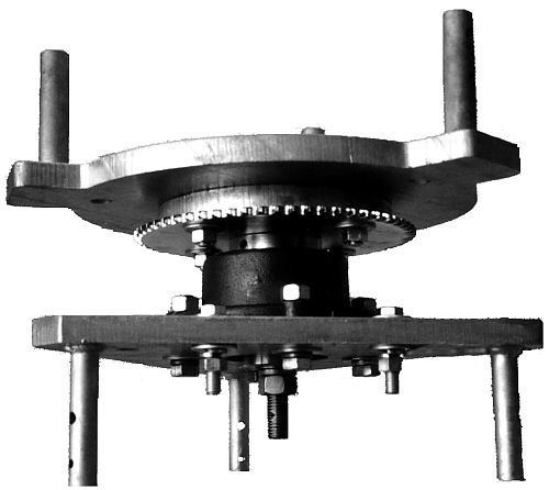 The guy wire attachment hole has a diameter of .75 inch in a .75 inch thick steel anchor plate. The outer ring is 1.00 inch steel as are the vertical uprights which house three of the cam followers. The inner ring is 1.25 inch thick for the Rohn 45 unit and 1.50 inch thick for the Rohn 55 unit. The inner and outer rings are made of steel and are hot dip galvanized after fabrication. The inner ring mounts in line between two tower sections. Solid steel stubs which mate with the upper tower section go through the inner ring and are welded on both sides. The lower tower section is secured to the same stubs. This method of attachment allows for the installation of at least two tower sections above the highest guy wire bearing. This feature provides a very strong mast for mounting antennas, not to mention it can be climbed. Standard tower leg hardware is used to secure the inner ring to the tower sections. Since the outer ring is stationary, it can be the end support for wire antennas, either slopers fed against the tower, inverted vee's or the end support for other types of wire arrays. Guy ring spacing will vary between 30-40 feet for Rohn 45G and 40-50 feet for Rohn 55G. Spacing for both designs will depend on the amount of wind loading on the tower from installed antennas and the tower construction requirements in your wind zone area. (i.e. 70, 80 or 110mph) |